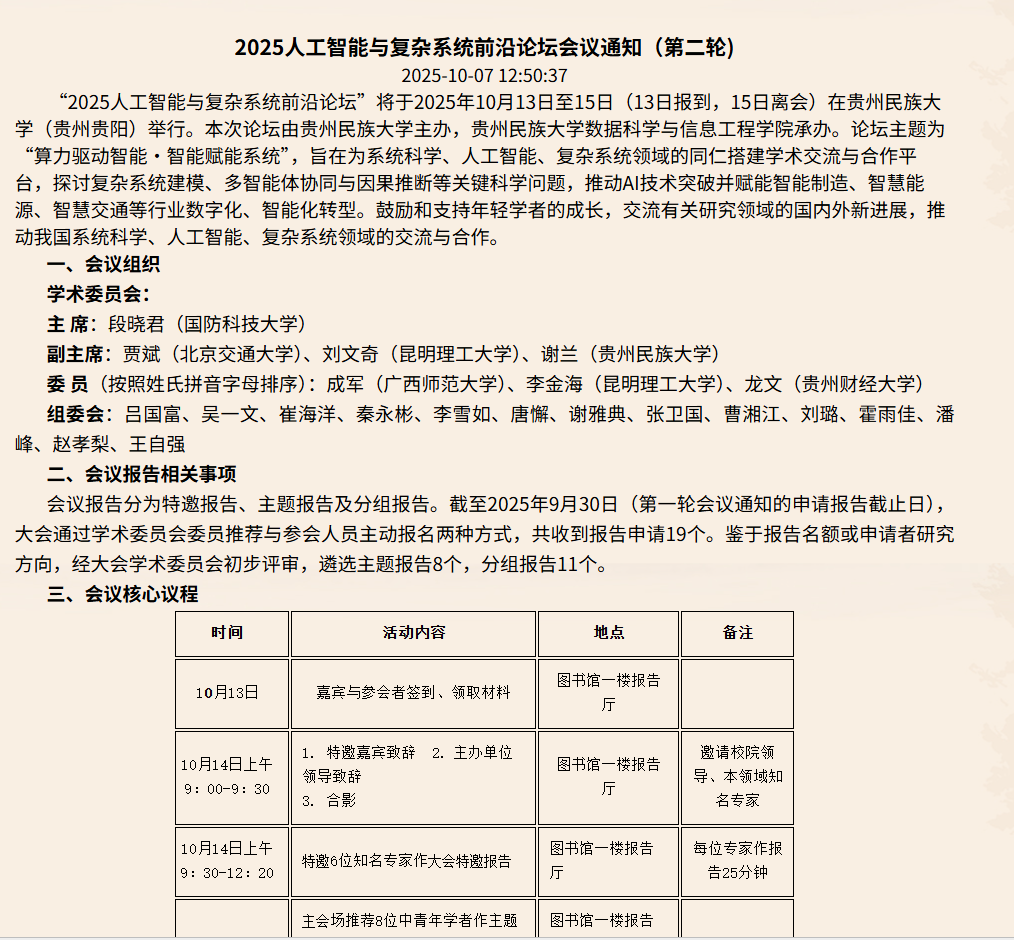 2025人工智能与复杂系统前沿论坛会议…
