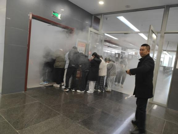演练前,工作人员向师生普及了火灾报警流程及疏散逃生“低姿、捂鼻、靠右行”核心要点,重点强调了宿舍电器使用、实验室易燃品管理等日常安全注意事项。演练模拟图书馆因电器短路引发火灾场景。浓烟滚滚,警报声响起,我院师生 迅速用毛巾捂住口鼻,弯腰低姿从消防通道有序撤离至安全区域,短短几分钟内所有人员均安全抵达集结点。随后,工作人员引导师生识别消防标识,并演示灭火器“提、拔、握、压”四步操作步骤。紧接着,师生代表分组参与实操,在工作人员的指导下使用灭火器扑火,亲身感受火情处置全过程,进一步巩固操作技能。
