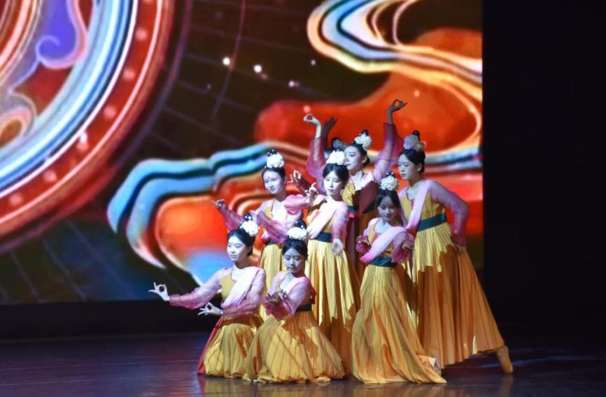 晚会节目丰富多彩,将数信特色与青春活力深度融合。分为“启航·数韵初绽”“筑梦·智享青春”“奔赴·信向未来”三个篇章。晚会由歌舞《侗族大歌》+《美丽中国》拉开序幕,非遗侗歌展魅力,声声传唱续文脉。古典舞《唐印》惊艳亮相,活化千年盛唐风韵,它以“俑”为灵感,将敦煌飞天的飘逸与唐代乐舞的雍容相融,让千年文化记忆鲜活绽放,成全场视觉焦点;对口相声《争个好坏》妙语连珠引全场欢腾。