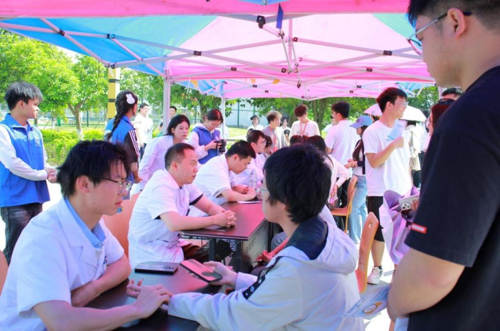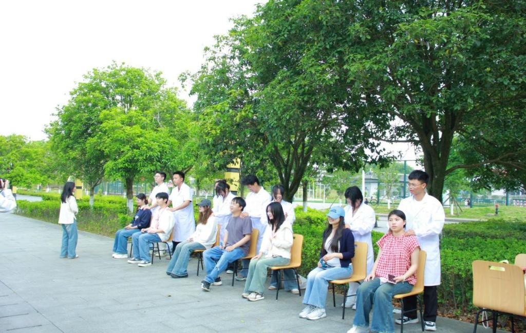 在中医药文化体验区,志愿者让同学们近距离感受到中医的独特魅力。通过“望闻问切”、穴位按摩、正骨推拿等传统技法体验,大家亲身领略了中医“简、便、验、廉”的诊疗特色。不少参与者表示,这是他们第一次直观体会到中医的实用与神奇。